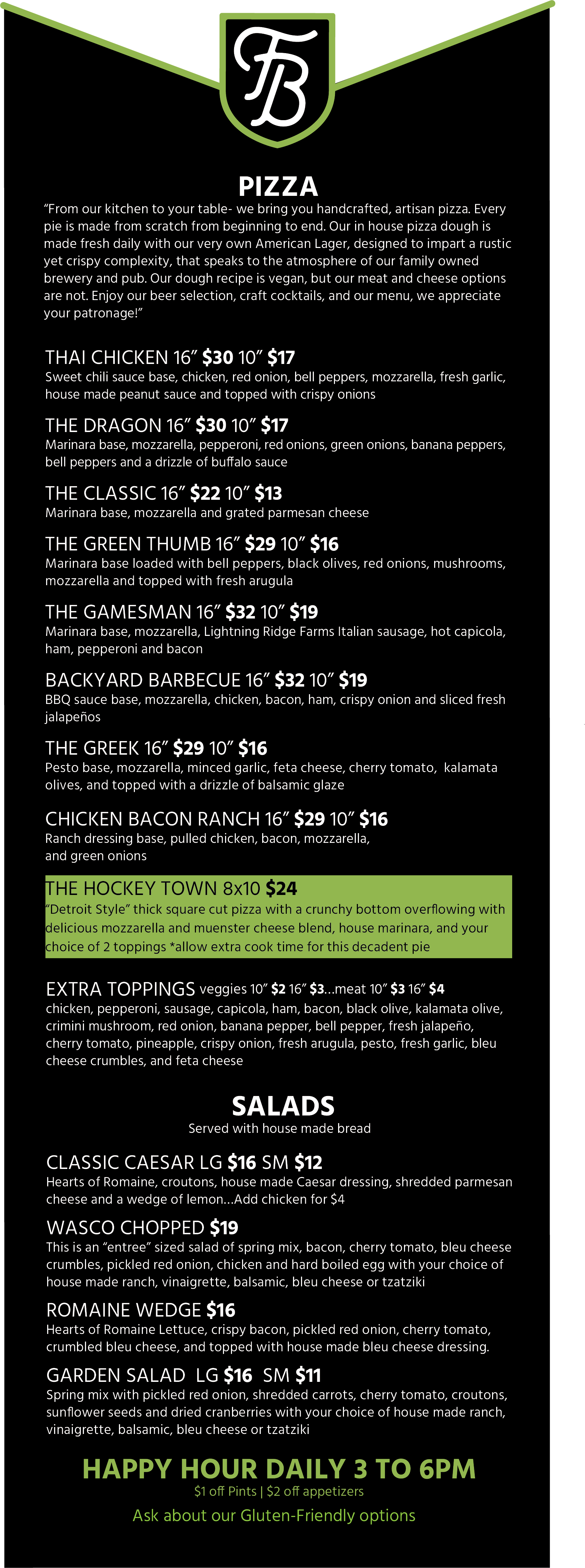 We are a family-friendly, and pet friendly establishment. We have a large offering of beers made in house, cider, local wines, and non-alcoholic beverages. We have outdoor seating available during all months, and water and bowls for your well behaved dogs.