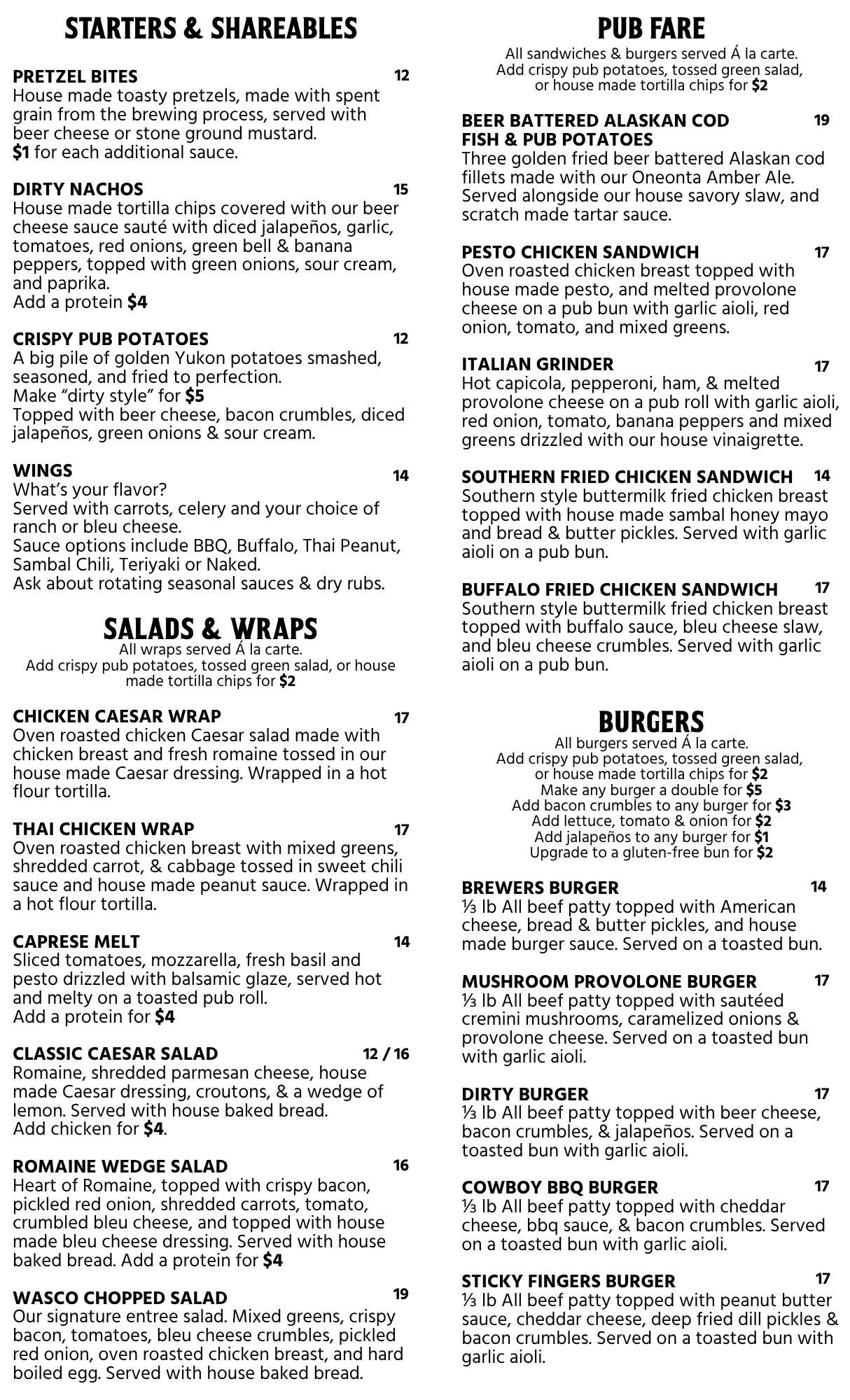 PULPIT ROCK PILSNER, “THE DIRTY” JUICY IPA, CHILLY WILLIE COLD IPA, THIS AMERICAN LAGER, CZARFACE RUSSIAN IMPERIAL STOUT, ONEONTA AMBER ALE, THRESHER WEST COAST IPA, AND SLAP & PICKLE DILL PICKLE GOSE.